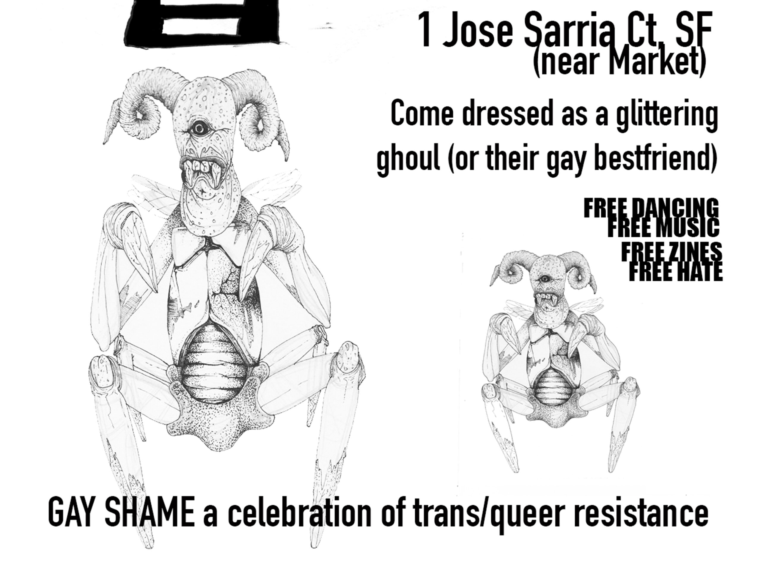ACTIONS ABOUTMEETINGSPROBLEMSABOLITION IS THE FLOOR NOT THE CEILINGMISS RONA’S SICK AND TIRED OF BEING SICK AND TIREDFIVE-O OUT OF PRIDE 50FREE MICHAEL JOHNSONQUEERS HATE TECHIESBOYCOTT MANNY’SLANDLORD ARSONRADICAL QUEER VEGAN ANTI-SOCIAL, 2009-2013DISARM THE POLICECROWDFRONTING, 2017LOWER POLK NEIGHBORSJUSTICE FOR CAMMERIN BOYD, 2004-2007GAY MARRIAGEBE A BITCH, 2005THE C.R.A.P., 2004VOMIT YOUR PRIDEZINEPODCASTACTIONSNIGHT OF THE LIVING NEXT DOOR, 2020WITH DEFEND BOYLE HEIGHTS, PANEL AND MARCH ON 55 DOLORES, 2018YIMBYTOWN ACTION, 2017LIGHTS! CAMERA! ARSON!, 2016PROTESTING SCOTT WIENER’S SENATORIAL RUN, 2016JANE KIM MCCOPPIN HUB ENCLOSURE BANNER, 2016PRO-SEX, ANTI-PRISON QUEERS FOR ABOLITION, 2014PROJECT LAWYER CONNECT, 2014POLK SEANCE, 2008HRC SWEATSHOP PLAYLAND, 2007KKKUTEST OF THE CASTRO, 2004PROTESTING NEWSOM’S APPOINTMENT, 2004POLITICAL FUNERAL FOR MURDERED QUEERS, 2003MARY FOR MAYOR, 2003WALK OF SHAME, 2003NEWSOM GAY PRIDE MOTORCADE ACTION, 2003PINK BLOC BREAK AWAY MARCH, 2003PROP “N” STANDS FOR NIGHTMARE, 2002TIRE BEACH, 2001 Archive of Gay Shame’s action xxxtravaganzas from 2001-present. 2025 2024 2023 2022 2021 2020 2019 2018 2017 2016 2015 2014 2013 2012 2011 2010 2009 2008 2007 2006 2005 2004 2003 2002 2001